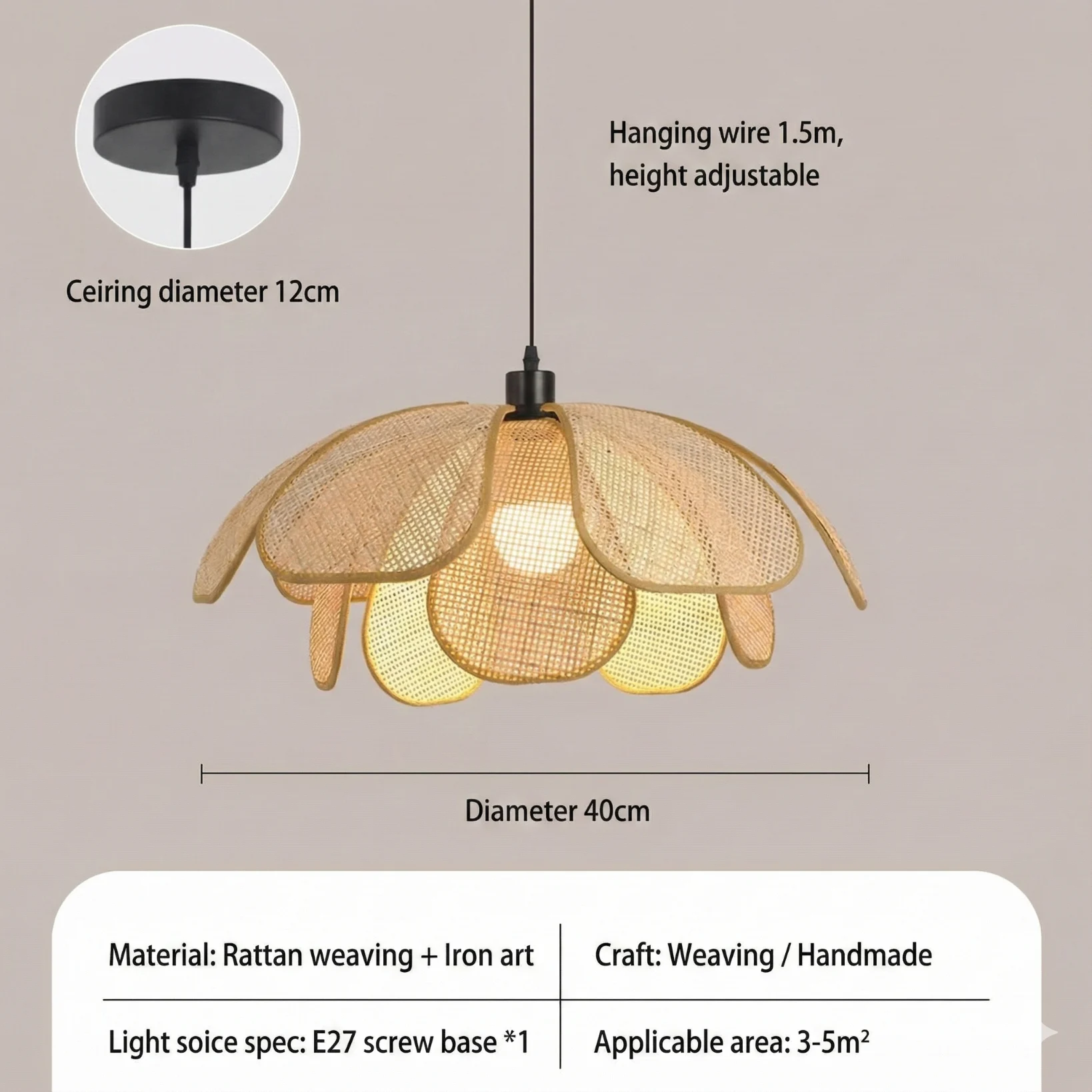 • Light Source: E27 Bulb (Max 40W recommended for soft glow).