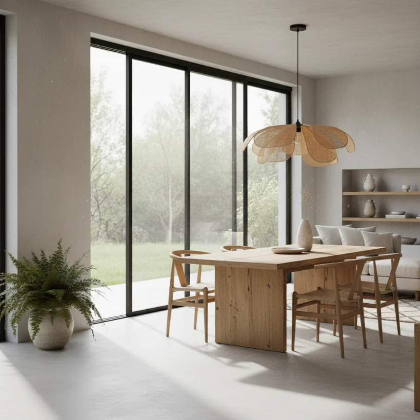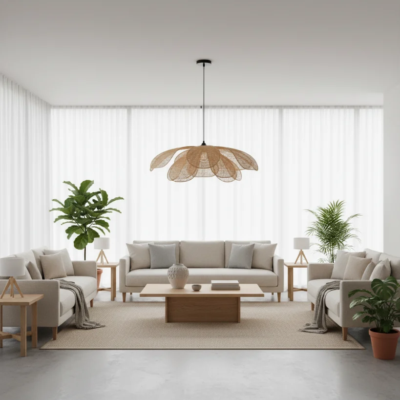 Handwoven with care, the overlapping rattan “petals” diffuse light beautifully, creating a warm, nest-like atmosphere. It brings the tranquillity of the garden indoors, perfectly aligning with our philosophy of Slow Living and connecting with nature.